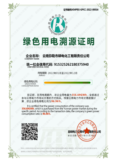 公司有員工600多名,年產(chǎn)黃磷6萬多噸,自我配套有宜良對歌山磷礦和10.8萬千瓦裝機容量的雷打灘水電站,連續(xù)五年評為黃磷行業(yè)“能效領跑者標桿企業(yè)”,榮獲紅河州重點納稅工業(yè)企業(yè)、云南省優(yōu)強民營企業(yè)、云南省“五一”勞動獎狀等。