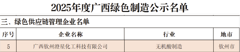 喜報(bào) | 欽州澄星入選2025年度省級(jí)綠色供應(yīng)鏈管理企業(yè)名單