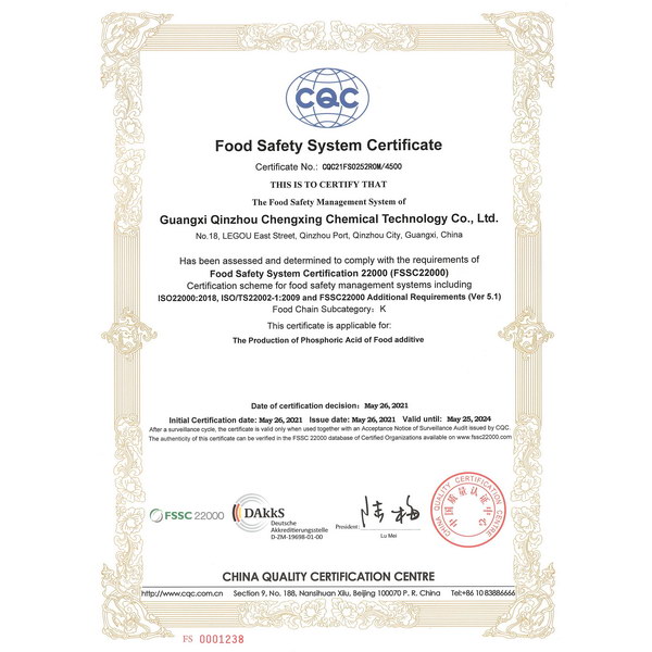 The company will take full location advantages of Qinzhou Port, build up the second deep production bases of fine phosphate products of Chengxing.