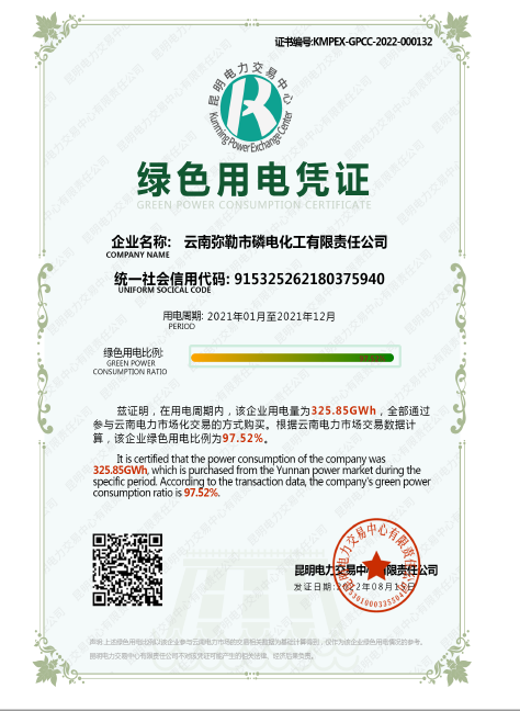 公司有員工600多名,年產(chǎn)黃磷6萬多噸,自我配套有宜良對歌山磷礦和10.8萬千瓦裝機容量的雷打灘水電站,連續(xù)五年評為黃磷行業(yè)“能效領跑者標桿企業(yè)”,榮獲紅河州重點納稅工業(yè)企業(yè)、云南省優(yōu)強民營企業(yè)、云南省“五一”勞動獎狀等。